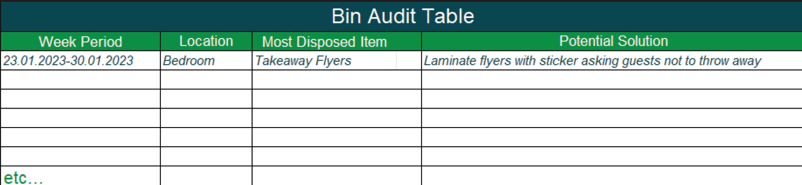 Use this table to note your observations during a Bin Audit.