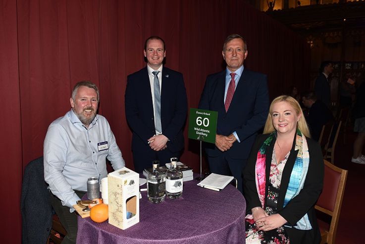 Jim Nash, Wild Atlantic Distillery; Tourism Minister Gordon Lyons; Christopher Brooke, Vice-Chairman of Tourism Ireland; and Aoife Fee, Tourism NI, at Flavours of Ireland 2021 in London.
