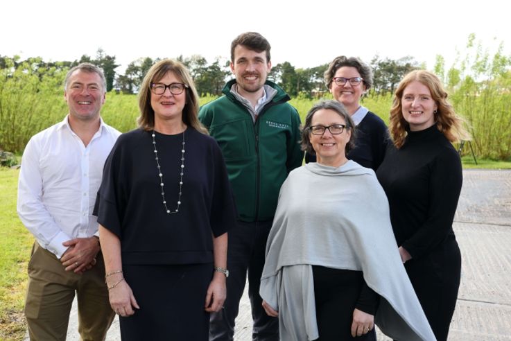 Photo Caption: Brian Connolly, Experience & Brand, Tourism NI, Marie Slattery, Facilitator Tourism Space (Front), David Gilliland, Managing Director, Brook Hall Estate & Gardens, Mary Rose Stafford, Executive Head of School Munster Technological University, Fiona Scott Hayward, Senior Researcher, Munster Teachnological University (back), Jess Hoyle, Experience & Brand Manager, Tourism NI.