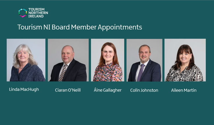 The Secretary of State, the Rt Hon Chris Heaton-Harris MP, has today announced the appointment of Mrs Aileen Martin, Mrs Linda MacHugh, Mr Ciaran O’Neill, Ms Áine Gallagher and Mr Colin Johnston as new Tourism NI Board Members.
