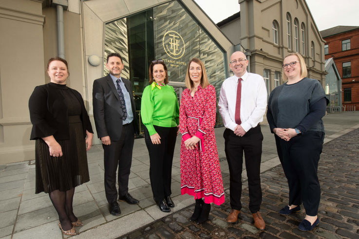 Titanic Hotel, Belfast, 22 November 2022; Tourism NI held a masterclass today on the theme of energy cost saving and sustainability as part of its Tourism Enterprise Development programme. The masterclass explored collaboration among tourism businesses for a more sustainable future. Tina O'Dwyer from The Tourism Space provided an overview on energy efficiencies as well as a practical checklist to help businesses prioritise and begin their sustainability journey. Other contributors included Invest NI, Keep Northern Ireland Beautiful, the Consumer Council and Business in the Community. Pictured l-r are Helen Bowman, Business in the Community, Scott Howes, Keep NI Beautiful, Tina O’Dwyer, The Tourism Space, Eimear Callaghan, Tourism NI, Conor Whoriskey, Invest NI and Dayna McCreadie, Consumer Council.